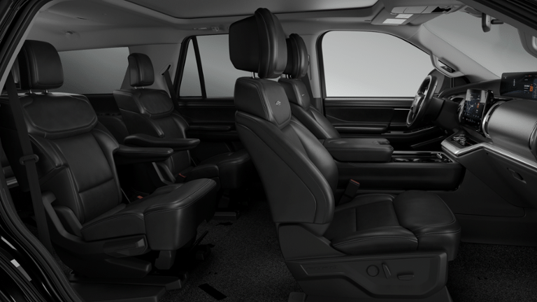 The exterior exudes a bold, commanding presence with its Black paint, Black Expedition lettering on the hood, and striking Ebony-painted 24-inch aluminum wheels. The Stealth Appearance Package adds a touch of sophistication, while the Stealth Performance Package ensures this Expedition delivers thrilling performance.