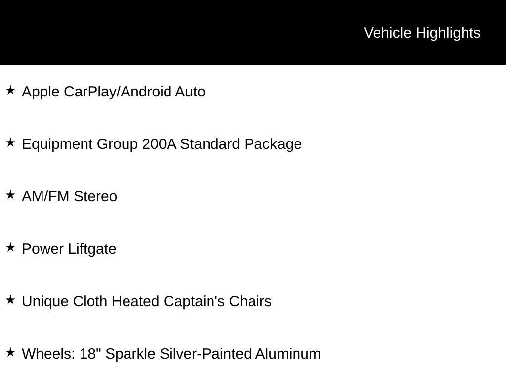 - Wheels: 18" Sparkle Silver-Painted Aluminum