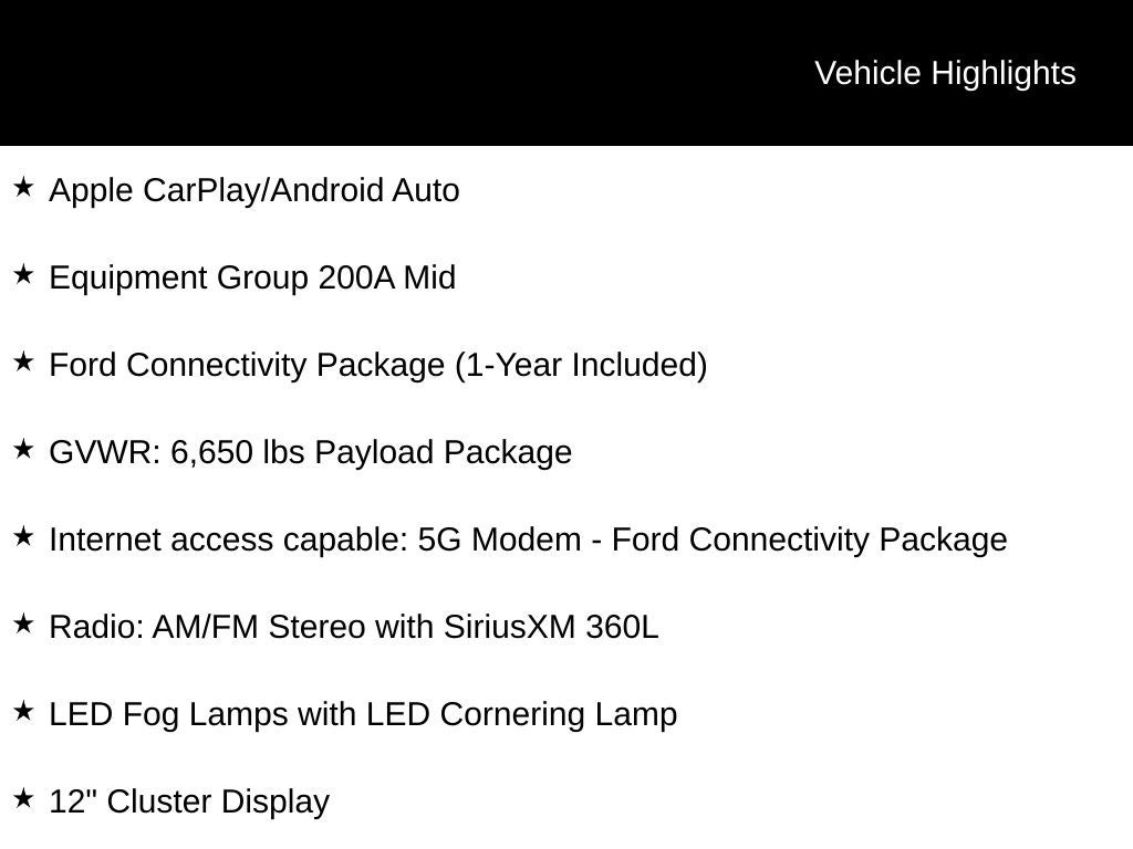 - Internet access capable: 5G Modem - Ford Connectivity Package