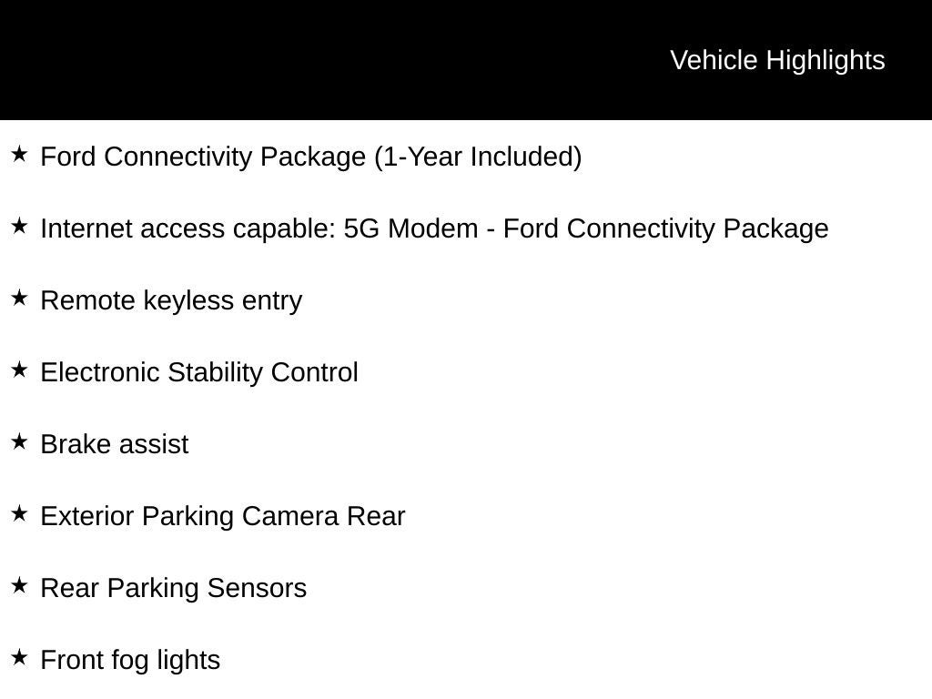 - Internet access capable: 5G Modem - Ford Connectivity Package
