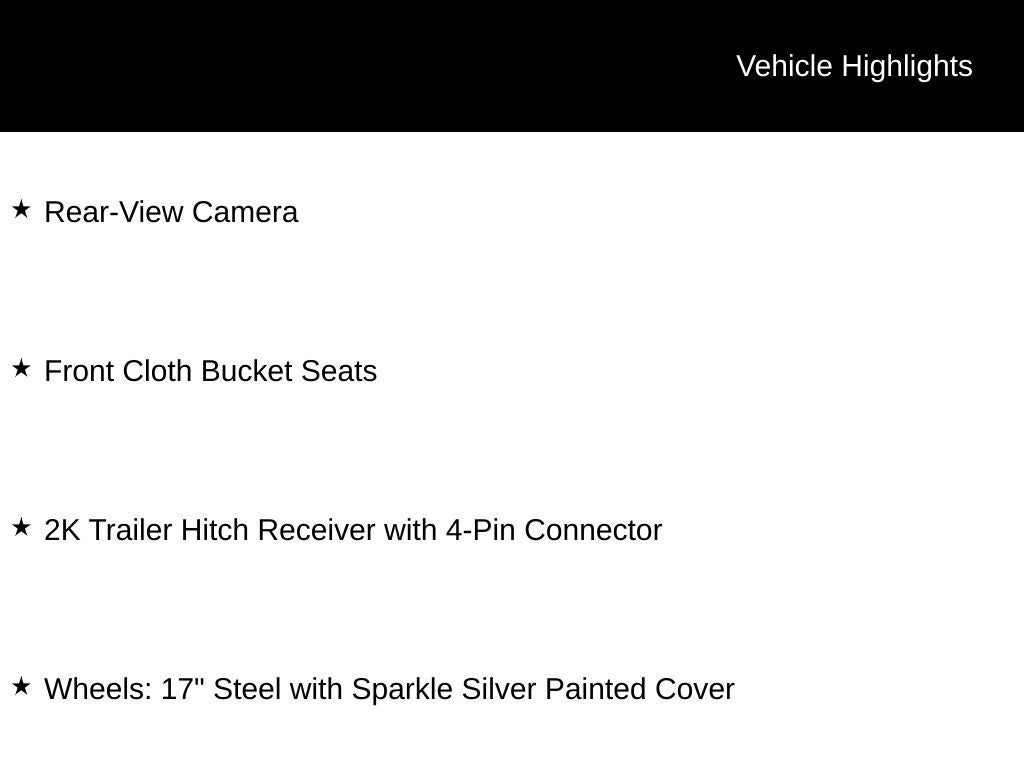 - Wheels: 17" Steel with Sparkle Silver Painted Cover