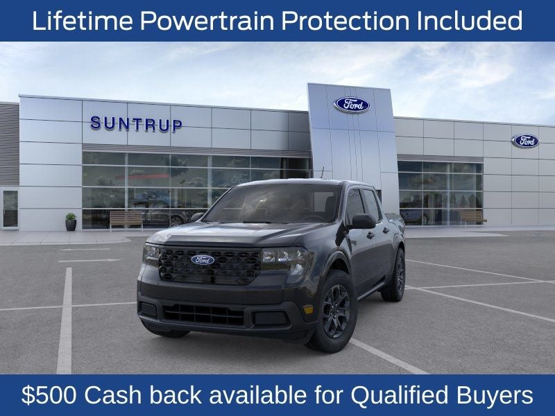 Suntrup Ford now offers Lifetime Powertrain Protection on all eligible New and Pre-Owned Vehicles. It's no secret that people are keeping their vehicles longer and driving them farther than ever before. Because we want you to be our customer for life, our Ford dealership in St. Louis, MO is proud to provide Lifetime Powertrain Protection on our vehicles at no additional cost. We want you to have the peace of mind that comes from knowing you are covered for the cost of critical mechanical breakdowns. See dealer for details. 2026 Ford Maverick XLT 2.91 Axle Ratio, 4-Wheel Disc Brakes, 6 Speakers, ABS brakes, Air Conditioning, Alloy wheels, AM/FM radio: SiriusXM with 360L, Apple CarPlay/Android Auto, Auto High Beams, Auto High-beam Headlights, Automatic temperature control, Brake assist, Bumpers: body-color, Compass, Delay-off headlights, Driver door bin, Driver vanity mirror, Dual front impact airbags, Dual front side impact airbags, Electronic Stability Control, Emergency communication system: SYNC 4 911 Assist, Exterior Parking Camera Rear, Ford Connectivity Package (1-Year Included), Front anti-roll bar, Front Bucket Seats, Front Center Armrest, Front reading lights, Front wheel independent suspension, Fully automatic headlights, Illuminated entry, Internet access capable: 5G Modem - Ford Connectivity Package, Intersection Assist, Knee airbag, Lane-Keeping System, Low tire pressure warning, Occupant sensing airbag, Outside temperature display, Overhead airbag, Overhead console, Panic alarm, Passenger door bin, Passenger vanity mirror, Power door mirrors, Power steering, Power windows, Pre-Collision Assist with Automatic Emergency Braking, Radio data system, Radio: AM/FM Stereo with 6 Speakers, Rear anti-roll bar, Rear seat center armrest, Rear step bumper, Rear-View Camera, Remote keyless entry, Security system, SiriusXM with 360L, Speed control, Speed-sensing steering, Steering wheel mounted audio controls, SYNC 4 with Enhanced Voice Recognition, Telescoping steering wheel, Tilt steering wheel, Traction control, Trip computer, Unique Cloth Front Bucket Seats, Wheels: 17 Carbonized Gray Painted Aluminum. Shadow Black FWD 8-Speed Automatic EcoBoost 2.0L I4 GTDi DOHC Turbocharged VCT