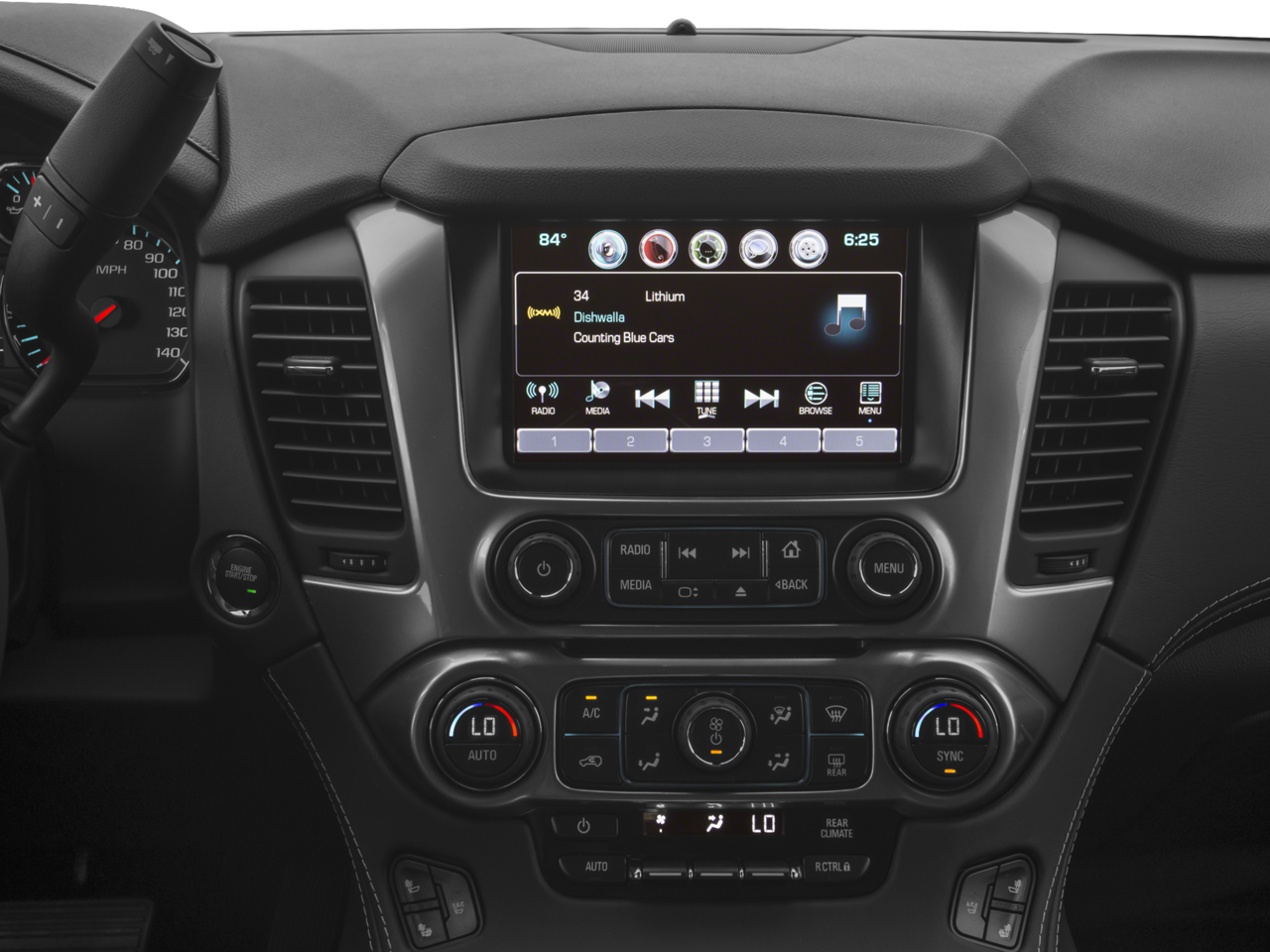 This Suburban is well equipped with Enhanced Driver Alert Package (Y86) (Forward Collision Alert Sensor Indicator, Intellibeam Headlamps w/Automatic High Bean On/Off, and Lane Keep Assist), License Plate Front Mounting Package, Magnetic Ride Control Suspension Package, Max Trailering Package (2-Speed Active Electronic AutoTrac Transfer Case and Integrated Trailer Brake Controller), Preferred Equipment Group 1LZ (1st & 2nd Row Color-Keyed Carpeted Floor Mats, 3rd Row 60/40 Power Fold Split-Bench, 4-Wheel Antilock Disc Brakes, 5 12-Volt Auxiliary Power Outlets, Auto-Dimming Inside Rear-View Mirror, Black Assist Steps, Color-Keyed Carpeting Floor Covering, Driver & Front Passenger Airbags, Electronic Cruise Control w/Set & Resume Speed, Enhanced Driver Instrument Information Display, Extended-Range Remote Keyless Entry, Floor Console w/Storage Area, Fog Lamps, Front & Rear Parking Assist, Hands Free Power Liftgate, Heated 2nd Row Seats, Heated Leather Wrapped Steering Wheel, Memory Settings, OnStar Basic Plan For 5 Years, Passive Entry System, Power Folding & Adjustable Heated Outside Mirrors, Power Release 2nd Row Bucket Seats, Power Tilt & Telescoping Steering Column, Power-Adjustable Accelerator & Brake Pedals, Push Button Keyless Start, Rear Cross-Traffic Alert Sensor Indicator, Roof-Mounted Luggage Rack Side Rails, Side Blind Zone Alert w/Lane Change Alert, SiriusXM Satellite Radio, Universal Home Remote, and Wireless Charging), Sun, Entertainment & Destinations Package (3rd Row DVD Screen, Power Tilt-Sliding Sunroof w/Express-Open/Close, and Rear Seat Entertainment System), 10 Speakers, 3rd row seats: split-bench, 4-Wheel Disc Brakes, 6-Way Power Front Passenger Seat Adjuster, ABS brakes, Adaptive suspension, Adjustable pedals, Air Conditioning, Alloy wheels, AM/FM radio: SiriusXM, Apple CarPlay, Auto High-beam Headlights, Auto-dimming door mirrors, Auto-dimming Rear-View mirror, Automatic temperature control, Bodyside moldings, Bose Centerpoint Premium 10-Speaker Surround Sound, Brake assist, Bumpers: body-color, CD player, Compass, Delay-off headlights, Driver door bin, Driver vanity mirror, Dual front impact airbags, Dual front side impact airbags, Electronic Stability Control, Emergency communication system: OnStar Guidance, Exterior Parking Camera Rear, Front anti-roll bar, Front Bucket Seats, Front Center Armrest, Front dual zone A/C, Front fog lights, Front reading lights, Front wheel independent suspension, Fully automatic headlights, Garage door transmitter, HD Radio, Headphones, Heated & Cooled Driver & Front Passenger Seats, Heated & Cooled Front Reclining Bucket Seats, Heated door mirrors, Heated front seats, Heated rear seats, Heated steering wheel, High-Intensity Discharge Headlights, Illuminated entry, Lane Departure Warning & Safety Alert Seat, Leather Shift Knob, Low tire pressure warning, Memory seat, Navigation System, Occupant sensing airbag, OnStar w/4G LTE, Outside temperature display, Overhead airbag, Overhead console, Panic alarm, Passenger door bin, Passenger vanity mirror, Pedal memory, Perforated Leather-Appointed Seat Trim, Power door mirrors, Power driver seat, Power Liftgate, Power passenger seat, Power steering, Power windows, Radio: Chevrolet MyLink AM/FM Stereo w/Navigation, Rain sensing wipers, Rear air conditioning, Rear anti-roll bar, Rear audio controls, Rear reading lights, Rear window defroster, Rear window wiper, Remote keyless entry, Roof rack: rails only, Security system, Single-Slot CD/MP3 Player, Speed control, Speed-sensing steering, Split folding rear seat, Spoiler, Steering wheel memory, Steering wheel mounted audio controls, Tachometer, Telescoping steering wheel, Tilt steering wheel, Traction control, Trip computer, Turn signal indicator mirrors, Variably intermittent wiper