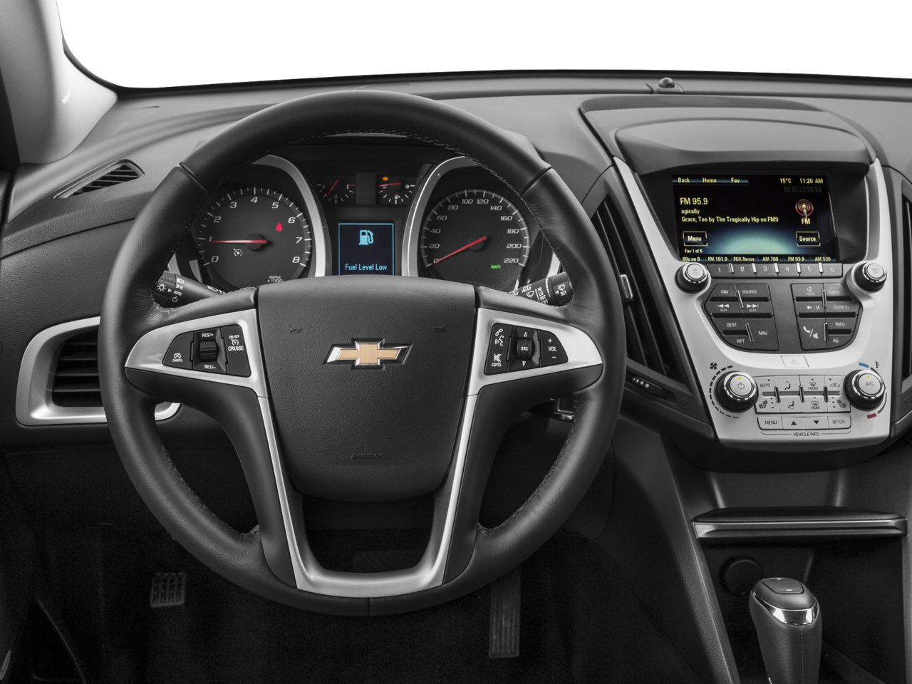 This Equinox is well equipped with Alloy wheels, Remote keyless entry, Security system, Steering wheel mounted audio controls, Traction control, 17 Aluminum Wheels, 3.23 Axle Ratio, 4-Wheel Disc Brakes, 6 Speakers, ABS brakes, Air Conditioning, AM/FM radio: SiriusXM, Bluetooth® For Phone, Brake assist, Bumpers: body-color, Cargo Area Close-Out Panel (LPO), Compass, Delay-off headlights, Deluxe Front Bucket Seats, Driver door bin, Driver vanity mirror, Dual front impact airbags, Dual front side impact airbags, E10 Fuel Capable, Electronic Stability Control, Emergency communication system: OnStar Guidance, Exterior Parking Camera Rear, Four wheel independent suspension, Front anti-roll bar, Front Bucket Seats, Front Center Armrest, Front License Plate Bracket, Front reading lights, Fully automatic headlights, Heated door mirrors, Illuminated entry, Leather-Wrapped Steering Wheel w/Audio/Cruise Ctrls, Low tire pressure warning, Manual Climate Control, Occupant sensing airbag, Outside temperature display, Overhead airbag, Panic alarm, Passenger door bin, Passenger vanity mirror, Power door mirrors, Power driver seat, Power steering, Power windows, Premium audio system: Chevrolet MyLink, Premium Cloth Seat Trim, Radio data system, Radio: Chevrolet MyLink Audio System, Rear anti-roll bar, Rear seat center armrest, Rear window defroster, Rear window wiper, Roof rack: rails only, SiriusXM Satellite Radio, Speed control, Speed-sensing steering, Split folding rear seat, Spoiler, Tachometer, Telescoping steering wheel, Tilt steering wheel, Trip computer, and Variably intermittent wipers.