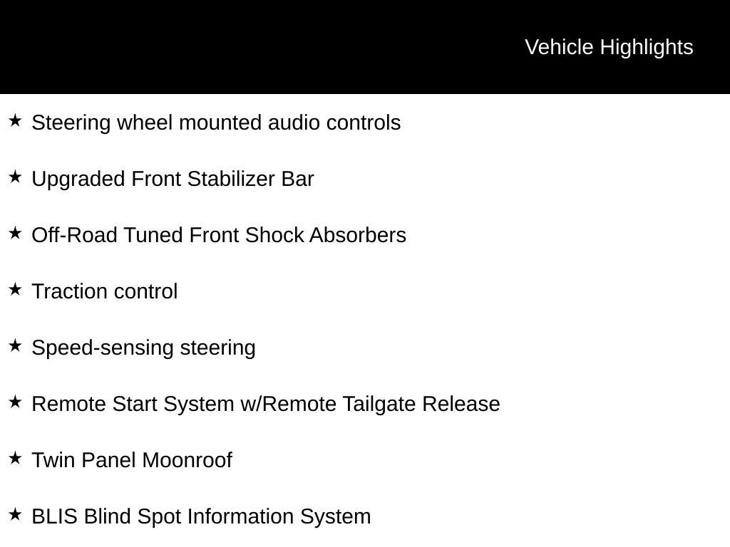 - 4-Wheel Disc Brakes w/4-Wheel ABS, Front And Rear Vented Discs, Brake Assist, Hill Hold Control and Electric Parking Brake