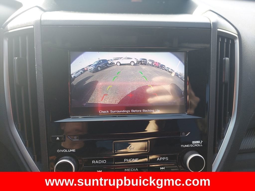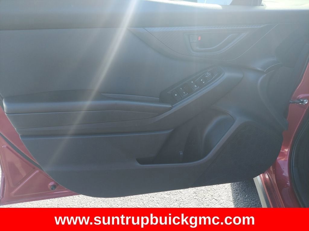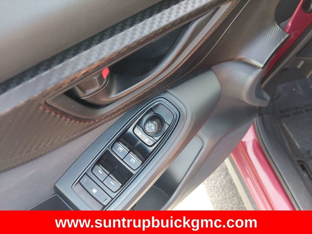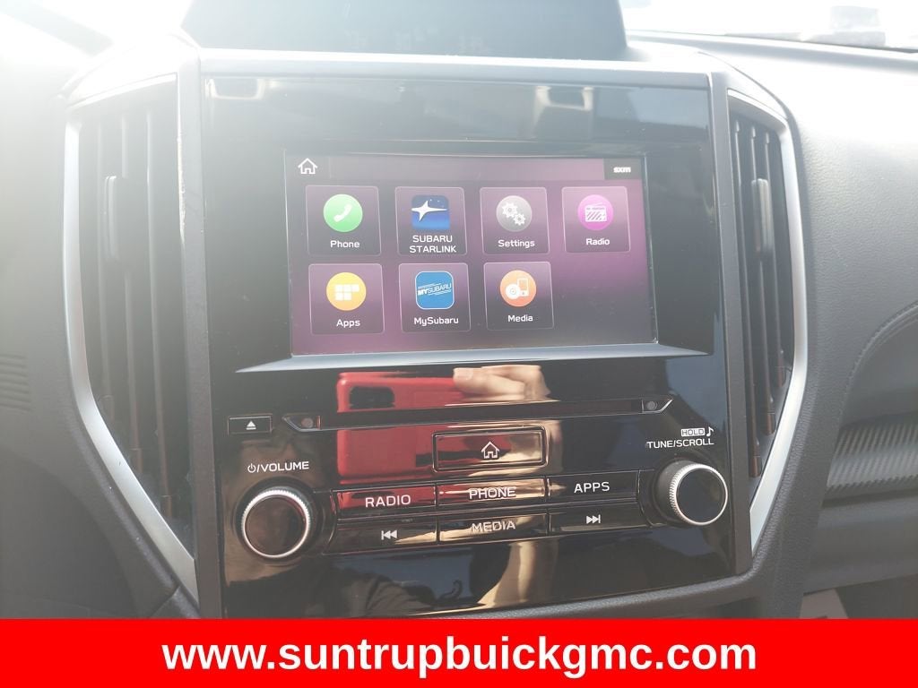 This Crosstrek is well equipped with EyeSight System (Blind Spot Detection/Rear Cross Traffic Alert), 17 Alloy Wheels, Front Bucket Seats, Heated Front Bucket Seats, Security system, Traction control, 3.90 Axle Ratio, 4-Wheel Disc Brakes, 6 Speakers, ABS brakes, Air Conditioning, Alloy wheels, AM/FM radio: SiriusXM, Brake assist, Bumpers: body-color, CD player, Cloth Upholstery, Driver door bin, Driver vanity mirror, Dual front impact airbags, Dual front side impact airbags, Electronic Stability Control, Emergency communication system: STARLINK Safety and Security, Exterior Parking Camera Rear, Four wheel independent suspension, Front anti-roll bar, Front Center Armrest, Front fog lights, Front reading lights, Fully automatic headlights, Heated door mirrors, Heated front seats, High Grade Instrument Cluster w/Color LCD Display, Illuminated entry, Knee airbag, Leather Shift Knob, Low tire pressure warning, Occupant sensing airbag, Outside temperature display, Overhead airbag, Overhead console, Overhead Console Shower Light, Panic alarm, Passenger door bin, Passenger vanity mirror, Power door mirrors, Power steering, Power windows, Radio data system, Radio: Subaru Starlink 6.5 Multimedia Plus System, Rear anti-roll bar, Rear window defroster, Rear window wiper, Remote keyless entry, Roof rack: rails only, Speed control, Speed-sensing steering, Split folding rear seat, Spoiler, STARLINK/Apple CarPlay/Android Auto, Steering Responsive Fog Lights, Steering wheel mounted audio controls, Subaru Starlink Smartphone Integration, Tachometer, Telescoping steering wheel, Tilt steering wheel, Tire Pressure Monitoring System, Trip computer, and Variably intermittent wipers.