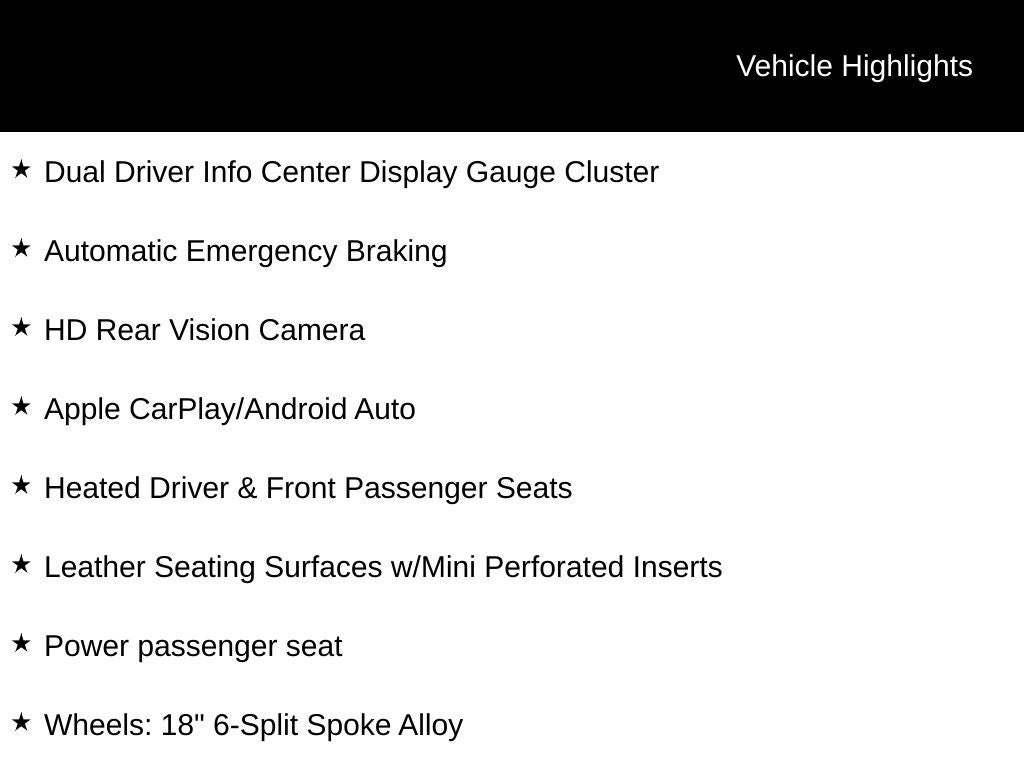- Wheels: 18" 6-Split Spoke Alloy