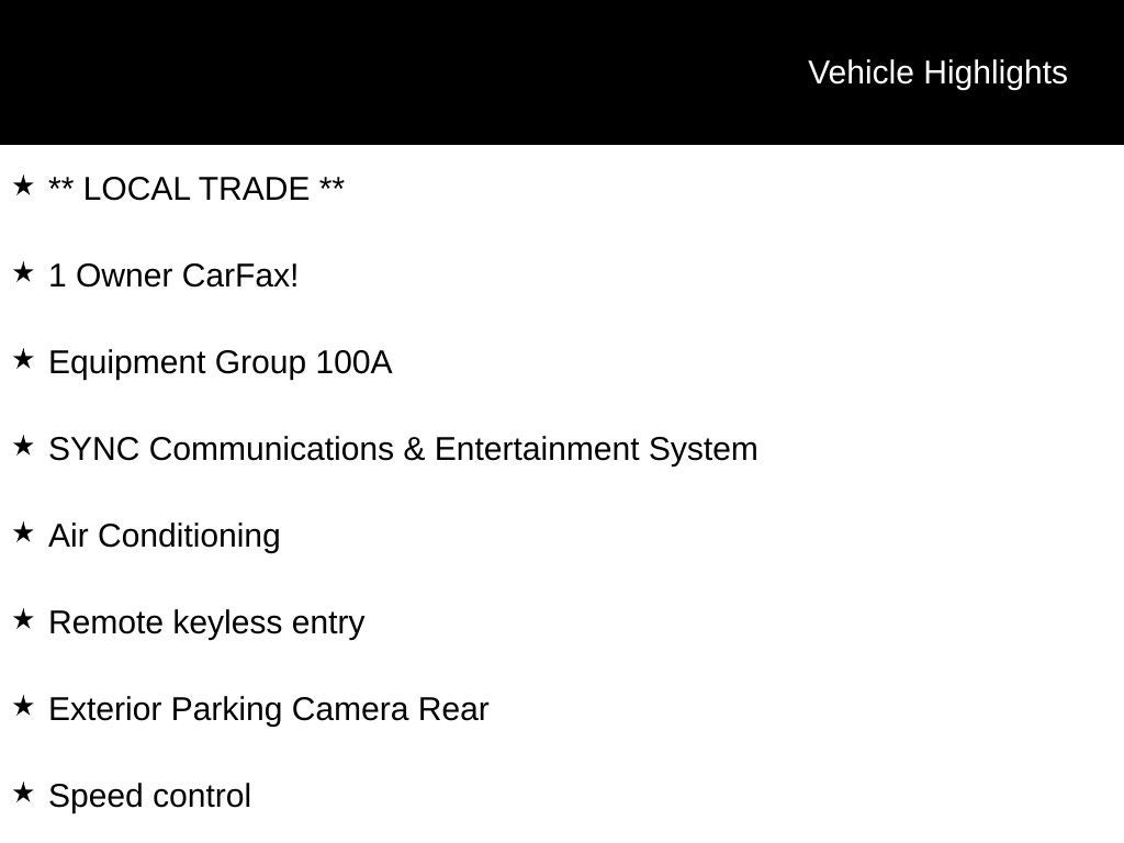 - SYNC Communications & Entertainment System -inc: enhanced voice recognition system, 911 Assist, 4.2" LCD screen in center stack, AppLink and 1 smart-charging USB port