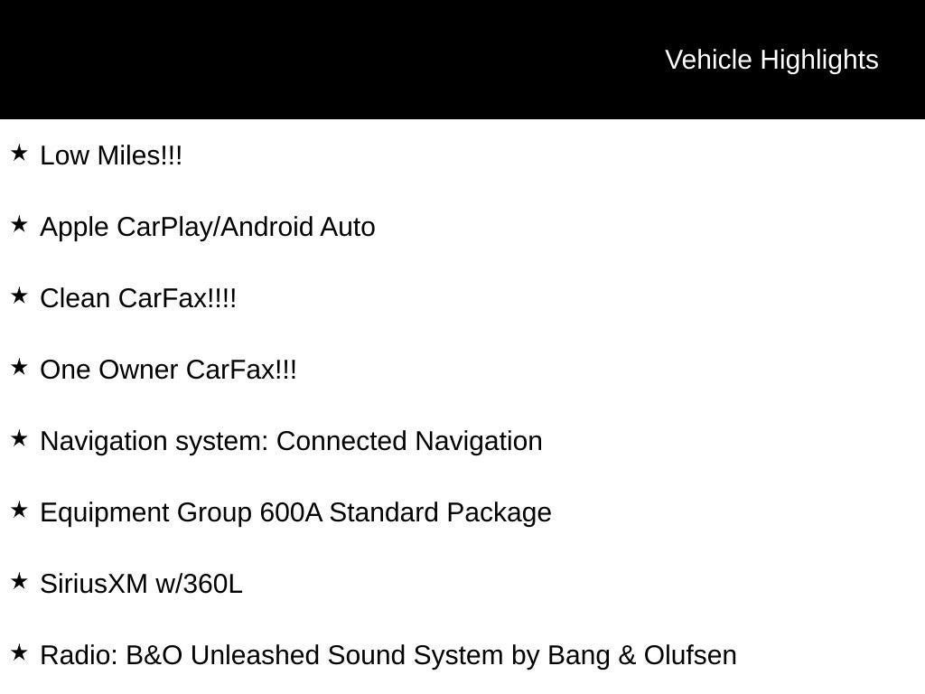 - Radio: B&O Unleashed Sound System by Bang & Olufsen