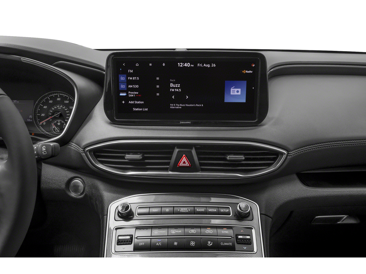 This Santa Fe is well equipped with Option Group 01, Alloy wheels, Apple CarPlay & Android Auto, Navigation System, Power driver seat, Power Liftgate, Remote keyless entry, Security system, Steering wheel mounted audio controls, Traction control, 18 x 7.5J Alloy Wheels, 4-Wheel Disc Brakes, 6 Speakers, ABS brakes, Air Conditioning, AM/FM radio: SiriusXM, Auto High-beam Headlights, Automatic temperature control, Axle Ratio: 4.081, Brake assist, Bumpers: body-color, Delay-off headlights, Driver door bin, Driver vanity mirror, Dual front impact airbags, Dual front side impact airbags, Electronic Stability Control, Emergency communication system, Exterior Parking Camera Rear, Four wheel independent suspension, Front anti-roll bar, Front Bucket Seats, Front Center Armrest, Front dual zone A/C, Front reading lights, Fully automatic headlights, Heated door mirrors, Heated Front Bucket Seats, Heated front seats, Illuminated entry, Leather steering wheel, Low tire pressure warning, Occupant sensing airbag, Outside temperature display, Overhead airbag, Overhead console, Panic alarm, Passenger door bin, Passenger vanity mirror, Power door mirrors, Power steering, Power windows, Radio: AM/FM Display Audio, Rear anti-roll bar, Rear seat center armrest, Rear window defroster, Rear window wiper, Speed control, Speed-sensing steering, Split folding rear seat, Spoiler, Stain-Resistant Cloth Seat Trim, Tachometer, Telescoping steering wheel, Tilt steering wheel, Trip computer, Turn signal indicator mirrors, and Variably intermittent wipers.