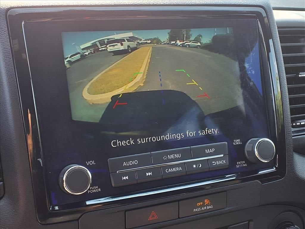 This Frontier is well equipped with Off-Road Protection Package, Tow Package, 17 Alloy Wheels, 3.692 Axle Ratio, 4-Wheel Disc Brakes, 6 Speakers, ABS brakes, Air Conditioning, Alloy wheels, AM/FM radio: SiriusXM, Anti-whiplash front head restraints, Automatic temperature control, Brake assist, Bumpers: body-color, Delay-off headlights, Driver door bin, Driver vanity mirror, Dual front impact airbags, Dual front side impact airbags, Electronic Stability Control, Emergency communication system: NissanConnect Services, Front anti-roll bar, Front Bucket Seats, Front Center Armrest, Front dual zone A/C, Front fog lights, Front reading lights, Front wheel independent suspension, Fully automatic headlights, Illuminated entry, Illuminated Kick Plates, Knee airbag, Leather Shift Knob, Low tire pressure warning, Navigation system: Nissan Navigation with Voice Recognition, Occupant sensing airbag, Off-Road Style Step Rails, Overhead airbag, Overhead console, Panic alarm, Passenger door bin, Passenger vanity mirror, Power door mirrors, Power driver seat, Power steering, Power windows, PRO Embroidered Premium Cloth Seat Trim, PRO-4X Carpeted Floor Mats, PRO-4X Mud Flaps, Radio data system, Radio: SXM/AM/FM/AUX/USB Audio System w/6 Speakers, Rear anti-roll bar, Rear seat center armrest, Rear step bumper, Remote Engine Starter Accessory, Remote keyless entry, Security system, Speed control, Speed-sensing steering, Split folding rear seat, Steering wheel mounted audio controls, Tachometer, Tilt steering wheel, Traction control, Trip computer, Variably intermittent wipers, and Voltmeter.
