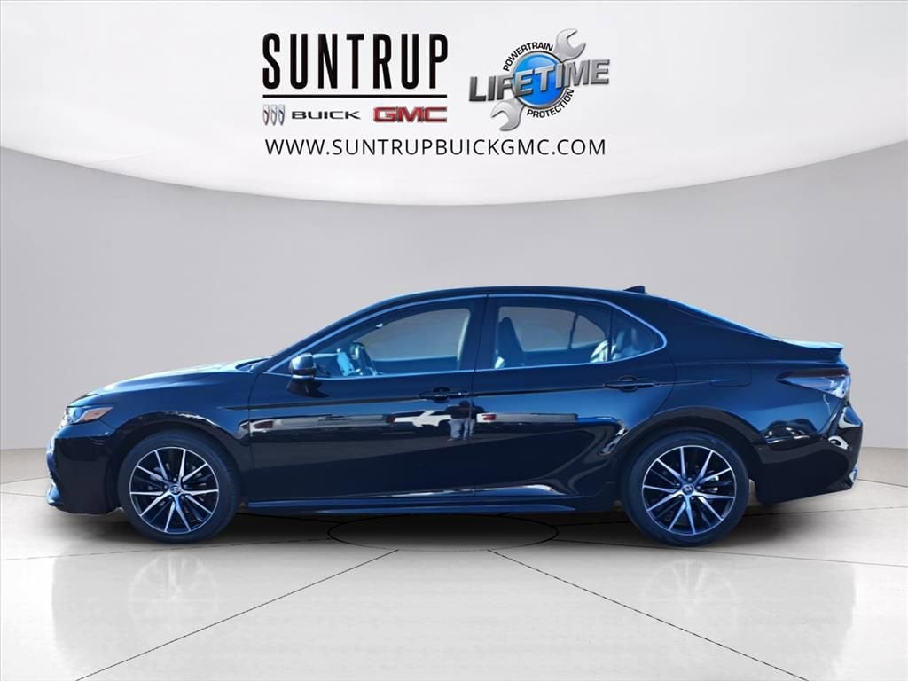 This Camry is well equipped with ABS brakes, Active Cruise Control, Alloy wheels, Electronic Stability Control, Front dual zone A/C, Heated door mirrors, Illuminated entry, Low tire pressure warning, Remote keyless entry, Traction control, 4-Wheel Disc Brakes, 6 Speakers, 8.0J x 18 Alloy Wheels, Air Conditioning, AM/FM radio: SiriusXM, Apple CarPlay/Android Auto, Auto High-beam Headlights, Automatic temperature control, Brake assist, Bumpers: body-color, Delay-off headlights, Driver door bin, Driver vanity mirror, Dual front impact airbags, Dual front side impact airbags, Emergency communication system: Safety Connect (1-year trial), Exterior Parking Camera Rear, Four wheel independent suspension, Front anti-roll bar, Front Bucket Seats, Front Center Armrest, Front reading lights, Fully automatic headlights, Knee airbag, Leather steering wheel, Occupant sensing airbag, Outside temperature display, Overhead airbag, Overhead console, Panic alarm, Passenger door bin, Passenger vanity mirror, Power door mirrors, Power driver seat, Power steering, Power windows, Radio data system, Radio: Audio, Rear anti-roll bar, Rear seat center armrest, Rear side impact airbag, Rear window defroster, Security system, Speed control, Speed-sensing steering, Split folding rear seat, Spoiler, Sport SofTex Seat Trim w/Fabric Inserts, Steering wheel mounted audio controls, Tachometer, Telescoping steering wheel, Tilt steering wheel, Trip computer, Turn signal indicator mirrors, and Variably intermittent wipers.