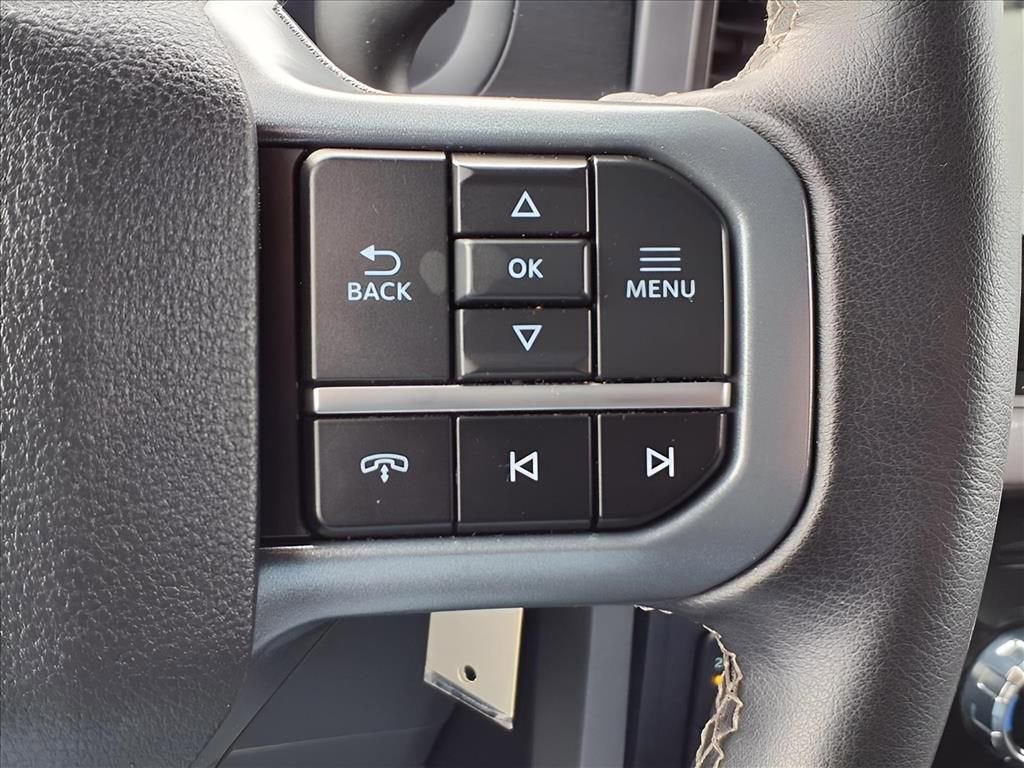 This F-150 is well equipped with Equipment Group 301A Standard, Mobile Office Package (Cloth 40/Console/40 Front Seats, Console Worksurface, and Partitioned Lockable Rear Storage), Alloy wheels, Power driver seat, Remote keyless entry, Steering wheel mounted audio controls, Traction control, 4-Wheel Disc Brakes, 6 Speakers, ABS brakes, Air Conditioning, AM/FM radio: SiriusXM with 360L, Auto High-beam Headlights, Auto-dimming Rear-View mirror, Automatic temperature control, Brake assist, Bumpers: chrome, Chrome wheels, Cloth 40/20/40 Front Seat, Compass, Delay-off headlights, Driver door bin, Driver vanity mirror, Dual front impact airbags, Dual front side impact airbags, Electronic Locking w/3.73 Axle Ratio, Electronic Stability Control, Emergency communication system: SYNC 4 911 Assist, Front anti-roll bar, Front Center Armrest w/Storage, Front dual zone A/C, Front fog lights, Front reading lights, Front wheel independent suspension, Fully automatic headlights, Heated door mirrors, Illuminated entry, Low tire pressure warning, Navigation system: Connected Navigation, Occupant sensing airbag, Outside temperature display, Overhead airbag, Overhead console, Panic alarm, Passenger door bin, Passenger vanity mirror, Power door mirrors, Power steering, Power windows, Radio data system, Radio: AM/FM SiriusXM w/360L, Rear reading lights, Rear step bumper, Rear window defroster, Security system, Speed control, Split folding rear seat, SYNC 4 w/Enhanced Voice Recognition, Tachometer, Telescoping steering wheel, Tilt steering wheel, Trip computer, Variably intermittent wipers, Voltmeter, and Wheels: 18 Chrome-Like PVD.