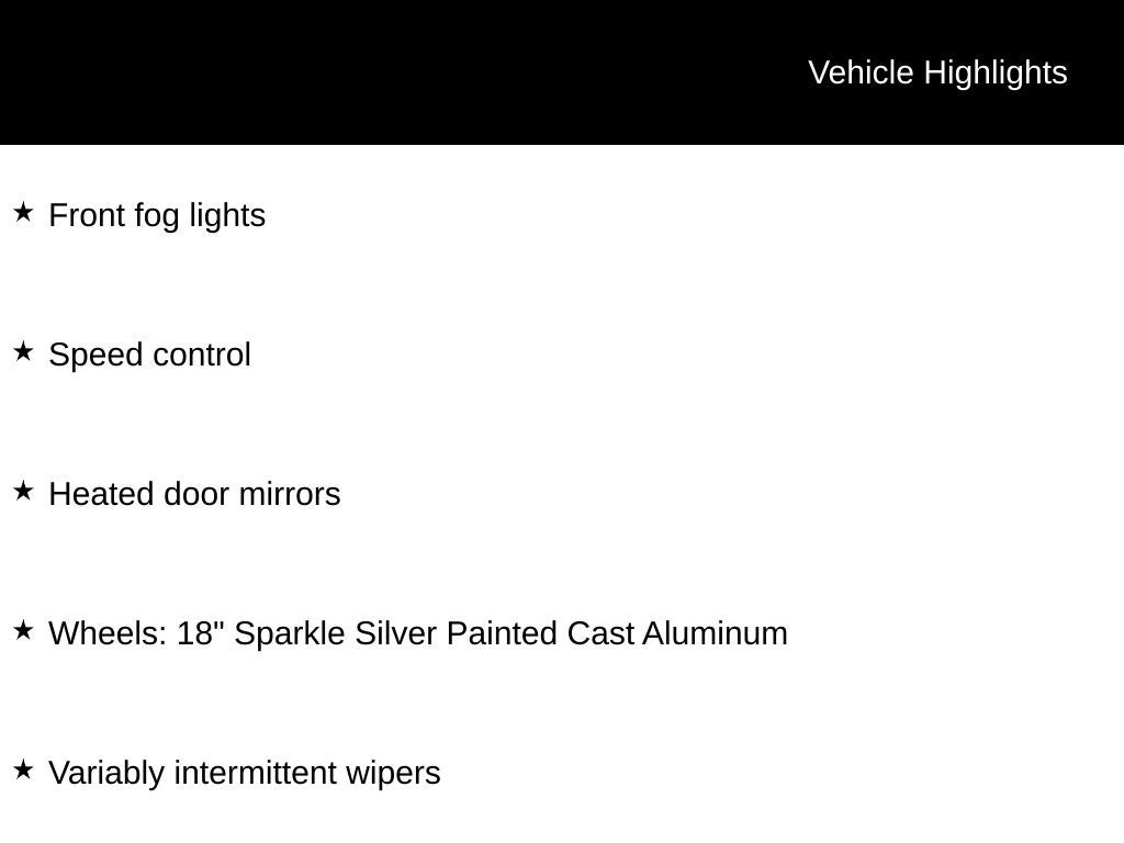- Wheels: 18" Sparkle Silver Painted Cast Aluminum