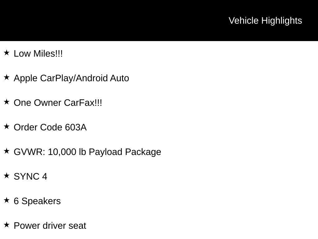 Oxford White 2024 Ford F-250SD XLT 4WD 10-Speed Automatic Power Stroke 6.7L V8 DI 32V OHV Turbodiesel Low Miles!!!, Apple CarPlay/Android Auto, One Owner CarFax!!!, F-250 SuperDuty XLT, 4D Crew Cab, Power Stroke 6.7L V8 DI 32V OHV Turbodiesel, 4WD, 6 Speakers, Auto High-beam Headlights, Brake assist, Electronic Stability Control, Exterior Parking Camera Rear, Front fog lights, Fully automatic headlights, GVWR: 10,000 lb Payload Package, Heated door mirrors, Order Code 603A, Power driver seat, Remote keyless entry, Speed control, Steering wheel mounted audio controls, SYNC 4, Traction control, Variably intermittent wipers, Wheels: 18 Sparkle Silver Painted Cast Aluminum.
