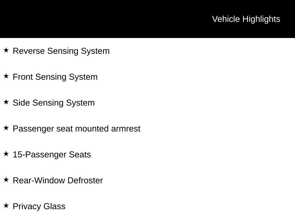 Safety is a top priority, and this Transit-350 XLT delivers with its impressive array of advanced safety technologies. From the Front Sensing System and Reverse Sensing System to the Side Sensing System and Electronic Stability Control, you can have peace of mind knowing your vehicle is equipped to keep you and your loved ones protected.