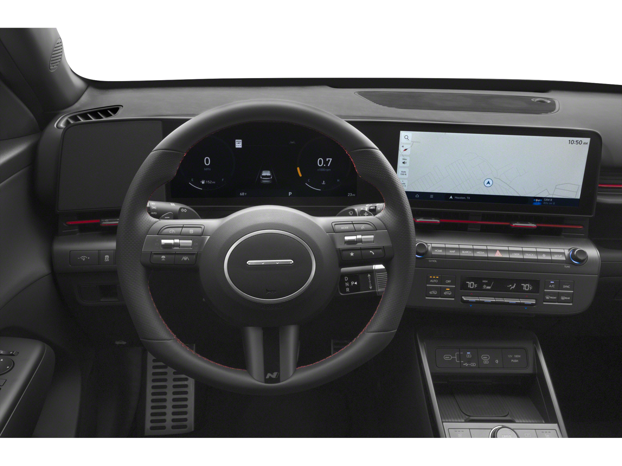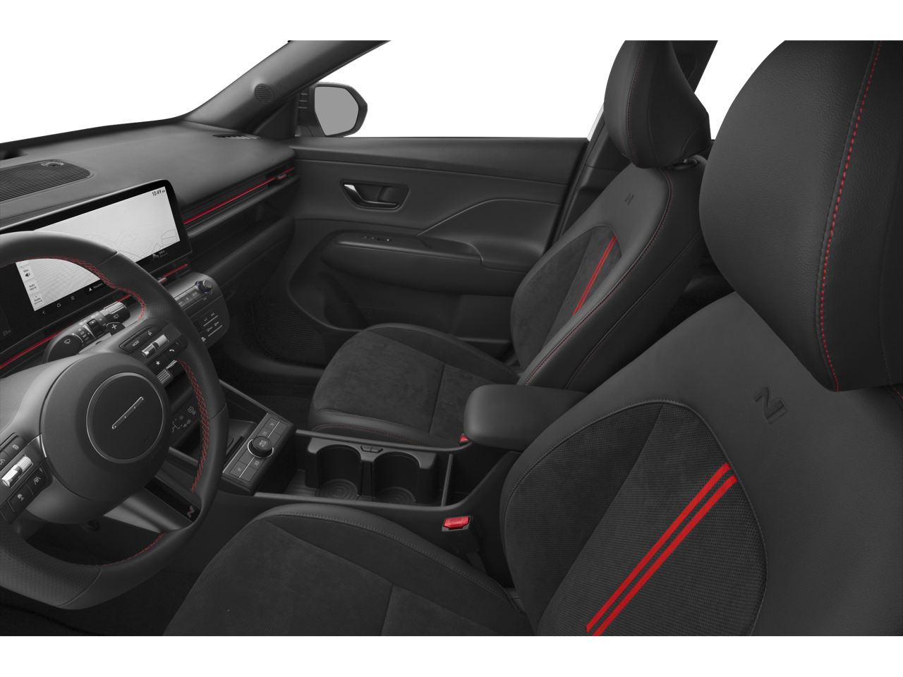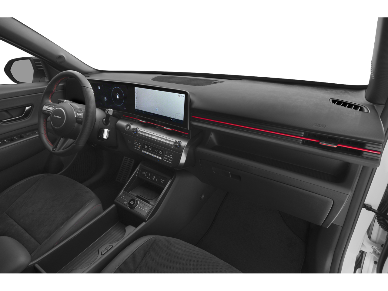 Boasting a sleek, eye-catching exterior in Atlast White with a Black Roof, the Kona N Line commands attention wherever it goes. Step inside and you'll be greeted by a host of premium features, including: