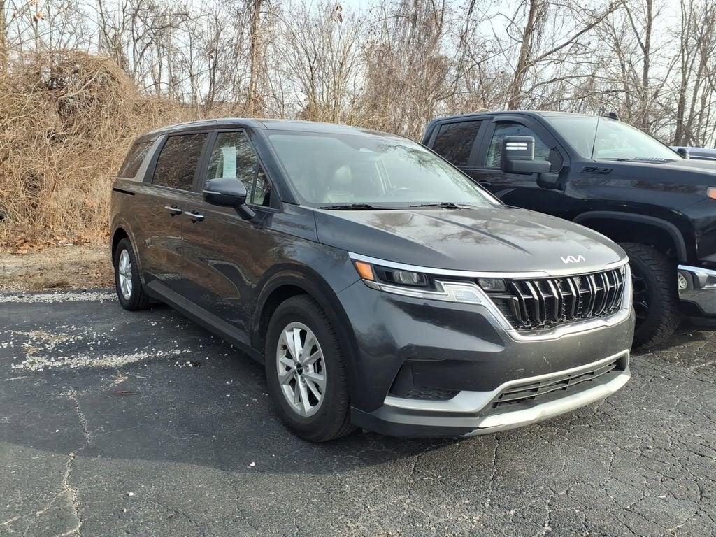 This Carnival is well equipped with Alloy wheels, Apple CarPlay & Android Auto, Remote keyless entry, Security system, Steering wheel mounted audio controls, Traction control, 3.51 Axle Ratio, 3rd row seats: split-bench, 4-Wheel Disc Brakes, 6 Speakers, ABS brakes, Air Conditioning, AM/FM radio, Auto High-beam Headlights, Brake assist, Bumpers: body-color, Cloth Seat Trim, Delay-off headlights, Driver door bin, Driver vanity mirror, Dual front impact airbags, Dual front side impact airbags, Electronic Stability Control, Four wheel independent suspension, Front anti-roll bar, Front Bucket Seats, Front Center Armrest, Front reading lights, Fully automatic headlights, Heated door mirrors, Illuminated entry, Knee airbag, Leather Shift Knob, Low tire pressure warning, Occupant sensing airbag, Outside temperature display, Overhead airbag, Overhead console, Panic alarm, Passenger door bin, Passenger vanity mirror, Power door mirrors, Power steering, Power windows, Radio: AM/FM Audio System, Rear air conditioning, Rear anti-roll bar, Rear reading lights, Rear window defroster, Rear window wiper, Reclining 3rd row seat, Speed control, Speed-sensing steering, Split folding rear seat, Spoiler, Tachometer, Telescoping steering wheel, Tilt steering wheel, Trip computer, Turn signal indicator mirrors, Variably intermittent wipers, and Wheels: 6.5J x 17 Clear Silver Painted Alloy.