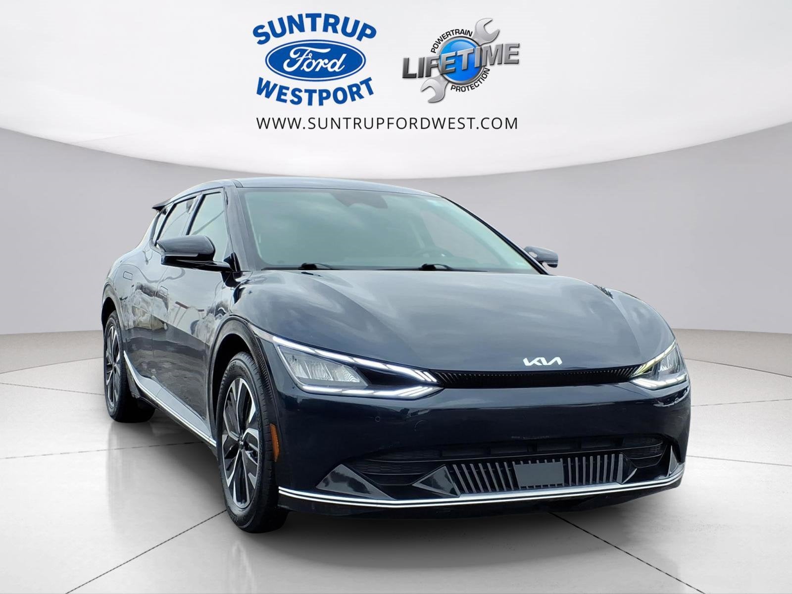 EV6 Wind, 4D Sport Utility, Electric Motor, AM/FM radio: SiriusXM, Apple CarPlay & Android Auto, Brake assist, Electronic Stability Control, Four wheel independent suspension, Fully automatic headlights, Heated & Ventilated Front Seats (3-Stage), Heated front seats, Navigation system: AVN 5.0 Navigation System, Power driver seat, Power Liftgate, Radio: Meridian Premium Audio System, Remote keyless entry, Security system, Smart Key w/ Push Button and Remote Start, Speed control, Steering wheel mounted audio controls, Traction control, Vegan Leather Seat Trim, Ventilated front seats, Wheels: 7.5J x 19 Black Painted Alloy, 14 Speakers, 4-Wheel Disc Brakes, ABS brakes, Air Conditioning, Auto High-beam Headlights, Auto-dimming Rear-View mirror, Automatic temperature control, Axle Ratio: 10.650, Bumpers: body-color, Carpet Floor Mats, Delay-off headlights, Driver door bin, Driver vanity mirror, Dual front impact airbags, Dual front side impact airbags, Emergency communication system, Front anti-roll bar, Front Bucket Seats, Front Center Armrest, Front dual zone A/C, Front reading lights, Heated door mirrors, Illuminated entry, Knee airbag, Low tire pressure warning, Memory seat, Occupant sensing airbag, Outside temperature display, Overhead airbag, Overhead console, Panic alarm, Passenger door bin, Passenger vanity mirror, Power door mirrors, Power passenger seat, Power steering, Power windows, Rain sensing wipers, Rear anti-roll bar, Rear seat center armrest, Rear window defroster, Speed-sensing steering, Split folding rear seat, Spoiler, Telescoping steering wheel, Tilt steering wheel, Trip computer, Turn signal indicator mirrors, Variably intermittent wipers, 1 Owner CarFax!, EV6 Wind, 4D Sport Utility, Electric Motor, AM/FM radio: SiriusXM, Apple CarPlay & Android Auto, Brake assist, Electronic Stability Control, Four wheel independent suspension, Fully automatic headlights, Heated & Ventilated Front Seats (3-Stage), Heated front seats, Navigation system: AVN 5.0 Navigation System, Power driver seat, Power Liftgate, Radio: Meridian Premium Audio System, Remote keyless entry, Security system, Smart Key w/ Push Button and Remote Start, Speed control, Steering wheel mounted audio controls, Traction control, Vegan Leather Seat Trim, Ventilated front seats, Wheels: 7.5J x 19 Black Painted Alloy. 134/101 City/Highway MPG