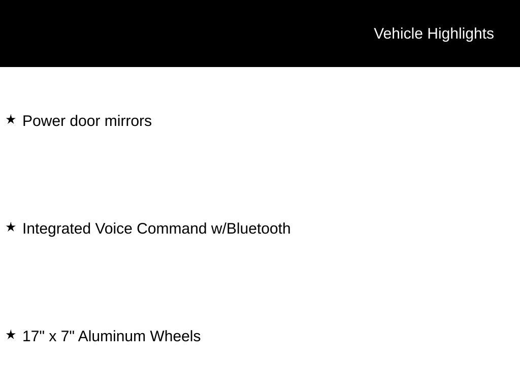 - Wheels: 17" x 7" Aluminum