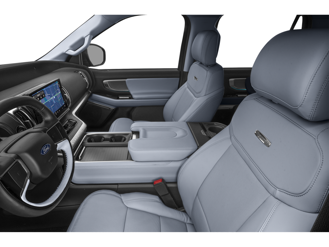 Step inside and experience the epitome of luxury. The Expedition Platinum's cabin is a harmonious blend of premium materials and advanced features, creating an environment that pampers you and your passengers. Sink into the heated and ventilated leather front captain's chairs and enjoy the seamless integration of technology, including the state-of-the-art B&O Sound System by Bang & Olufsen and the intuitive navigation system.