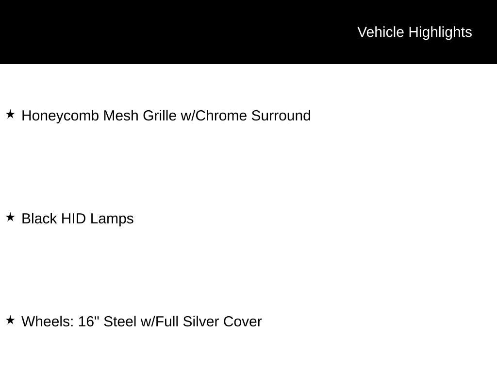 - Wheels: 16" Silver Steel w/Black Hubcap
