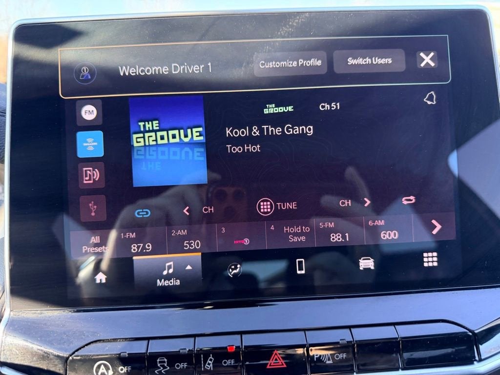 - UConnect 5 w/Seek-Scan, Clock, Aux Audio Input Jack, Steering Wheel Controls and Voice Activation