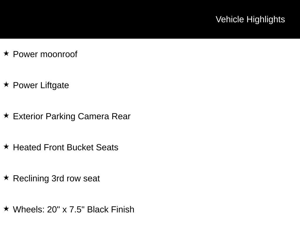 - Wheels: 20" x 7.5" Black Finish -inc: Alloy, machined finish accents