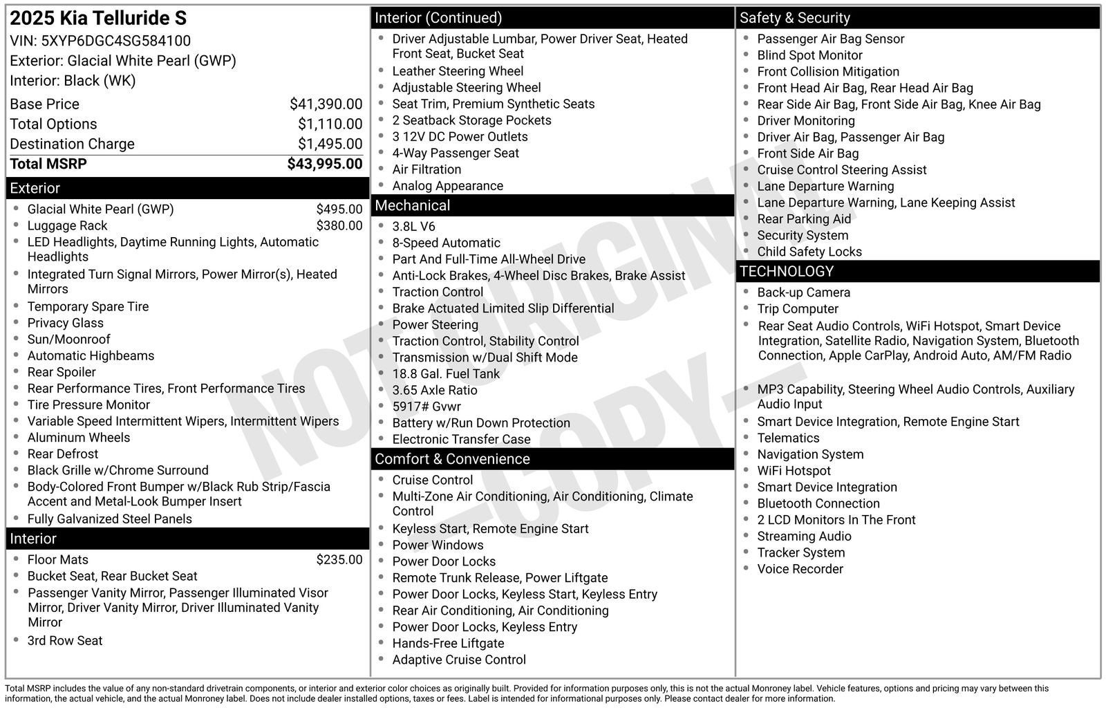 - Vehicle Name: Kia Telluride